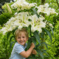 Лілія гігант Pretty Woman – одна з найвідоміших OT-гібридів, яку часто називають справжньою «лілією-деревом». Величні квіти діаметром 20–25 см мають ніжне біле забарвлення з легким рожевим відтінком у центрі, що робить їх елегантними та вишуканими. Висота рослини сягає 120–150 см, а за належних умов може перевищувати 180 см, створюючи справжній садовий шедевр. Сорт має приємний аромат середньої інтенсивності, який додає йому особливої привабливості.