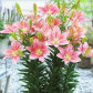Лілія низькоросла Foxtrot – вишуканий сорт із групи азіатських гібридів, який поєднує компактність і надзвичайну декоративність. Великі квіти діаметром 12–15 см мають ніжно-рожеве забарвлення з білою каймою та світлішими переливами по краях пелюсток. Така гармонійна комбінація відтінків робить сорт ідеальним для створення романтичних акцентів у саду чи на балконі. Висота рослини – лише 40–50 см, завдяки чому вона чудово підходить для контейнерного вирощування, бордюрів та невеликих клумб.