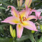 Забарвлення квітів: рожево-червоний центр, білі краї пелюсток, темні крапинки.