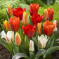 Тюльпани Грейга з цієї суміші — це живий весняний феєрверк. Вони швидко утворюють строкаті куртини, які дарують саду святковість і теплий настрій. Завдяки декоративному мармуровому листю ці тюльпани прикрашають клумби навіть після закінчення цвітіння. Рослини компактні й витривалі, тому чудово підходять для бордюрів, альпінаріїв і контейнерних посадок.