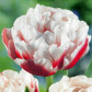 Tulipa 'Horizon' — це вражаючий пізній махровий тюльпан, який поєднує в собі насичене червоно-біле забарвлення з багатошаровою півонієподібною формою квітки. Його пелюстки створюють ефектний акцент у будь-якому саду.