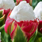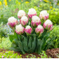 Tulipa 'Ice Cream' — це вражаючий пізній махровий тюльпан, який поєднує в собі ніжне біле забарвлення з насичено-рожевою основою, створюючи ефект морозива у вафельному стаканчику. Його пелюстки створюють ефектний акцент у будь-якому саду.