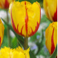 Tulipa fringed 'Flamenco' — це справжнє шоу кольорів і текстур. Сорт вражає насиченим червоно-жовтим забарвленням пелюсток та виразною бахромою по краях. Він виглядає так, ніби кожна квітка танцює у вогняному вихорі — саме так, як фламенко. Тюльпан ідеально підходить для створення драматичних весняних акцентів у клумбах, бордюрах, контейнерах і букетах.