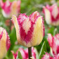 Tulipa fringed 'Passion Play' — ефектний сорт бахромчастих тюльпанів із глибоким пурпурово-рожевим відтінком пелюсток. Краї квітів прикрашені світлою бахромою, яка додає об’єму та створює враження кришталевого сяйва. Великі бокаловидні квіти виглядають урочисто й надзвичайно декоративно.