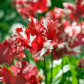Tulipa parrot 'Estella Rijnveld' — це справжній шедевр серед тюльпанів, який вражає пишністю форми та екстравагантним поєднанням кольорів. Його квіти – це симфонія червоного та білого, з хвилястими, пірчастими пелюстками, які нагадують оперення екзотичного птаха. Цей сорт створений, аби дивувати — в клумбі, в букеті, на терасі чи у вазоні. Він притягує погляд, наче коштовність серед класики.